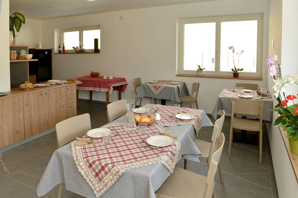 The B&B has three comfortable, en-suite rooms on the first floor, furnished with care and designed to welcome you in a quiet, family atmosphere. On the ground floor is a large dining room, where every morning you can enjoy a Mediterranean breakfast, seated at comfortable indoor tables, or, during fine weather, under the large porch outside the room. Whether you come to Piana Rotaliana for a cultural event, a hike in the mountains, a sporting event, to meet relatives or friends, for work or simply because it is a stop on your travelling trip, in our new house you will receive the attention reserved for special guests p