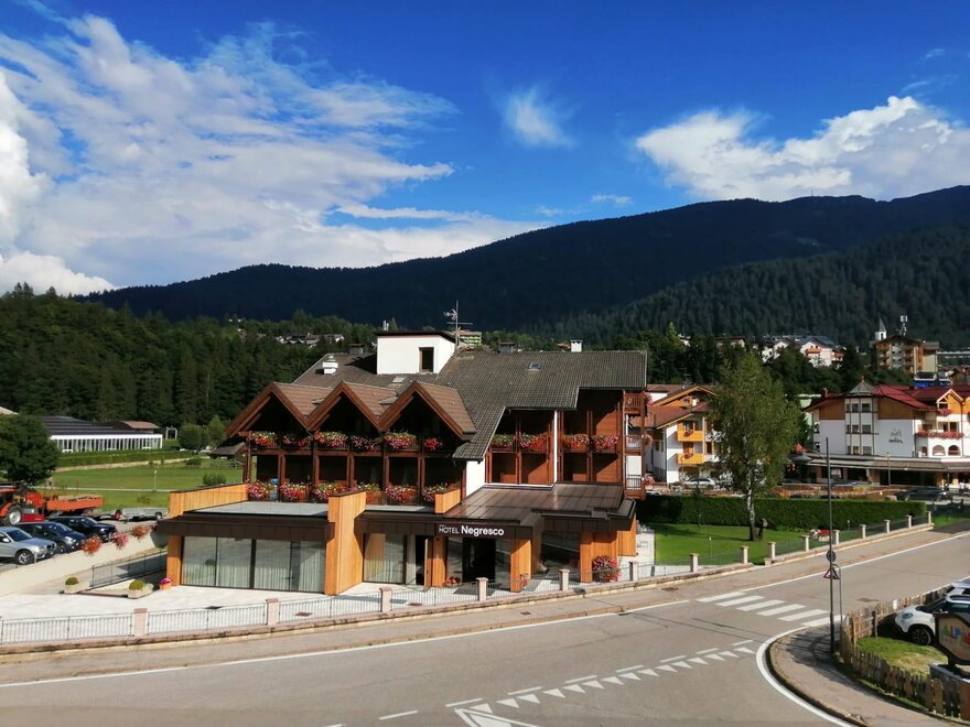 A comfortable, quiet hotel, newly built, with fantastic views towards the Brenta Dolomites.