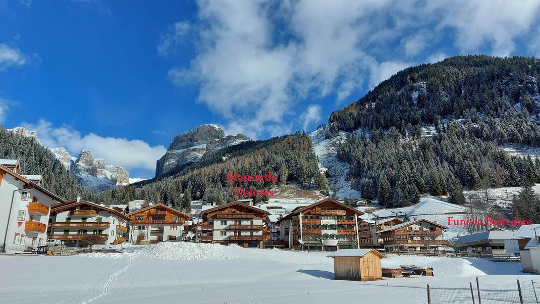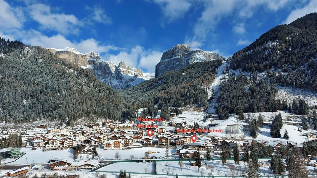 Attic apartment in Canazei with spectacular views of the Dolomites.