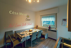 Cèsa Mesdì is located in Canazei, in the heart of the Dolomites, a few minutes from the town center and from the Belvedere ski lifts (easily reachable in 5 minutes on foot), which during the winter season lead directly to the famous ski tour of the Sellaronda. , while in summer they are the starting point for wonderful excursions in the high mountains. Our apartments are equipped with satellite color TV, safe, oven and microwave oven, hairdryer, washing machine, internet access, balcony with a panoramic view of the Dolomites, garden. Our house also has private parking (garage on request), bicycle and equipment storage, ski and boot storage. Small pets are welcome on request only. We will be happy to welcome you to Val di Fassa to spend your holidays in total freedom and relaxation.