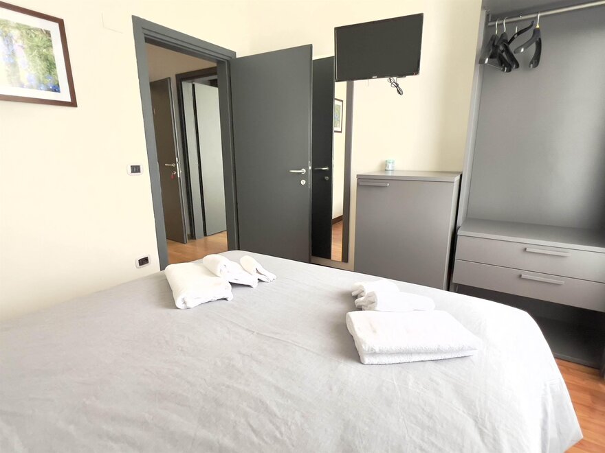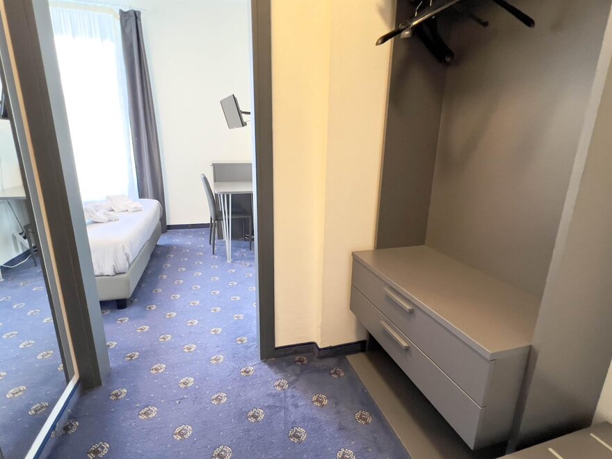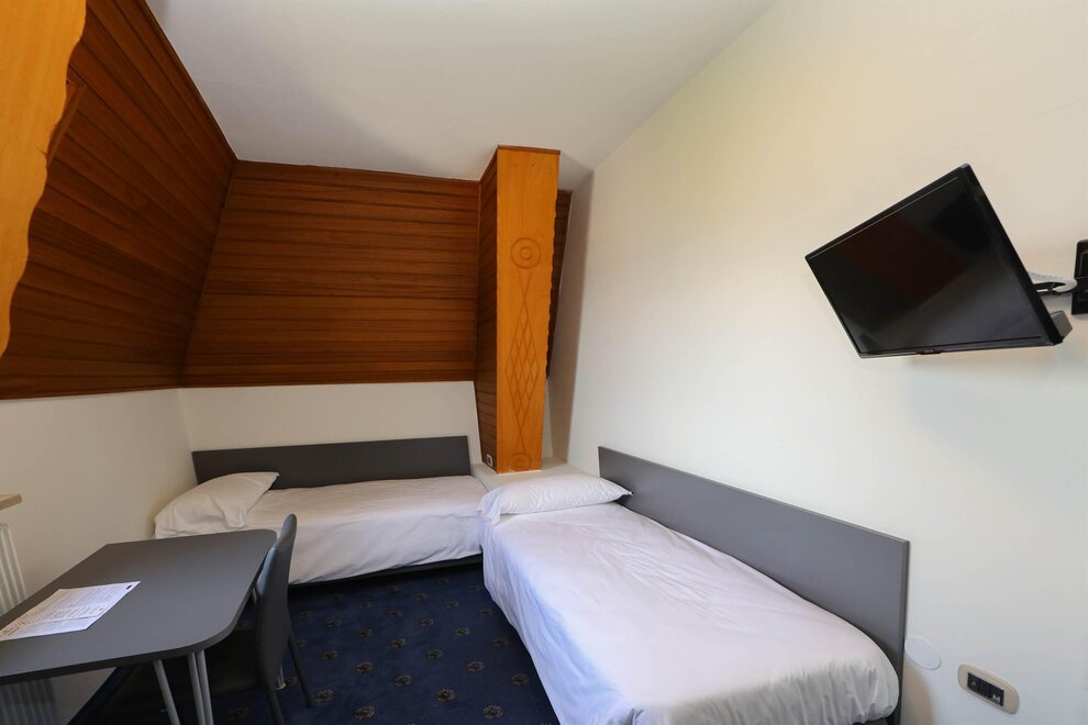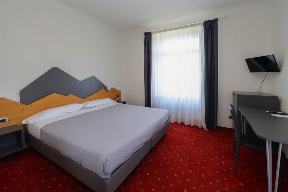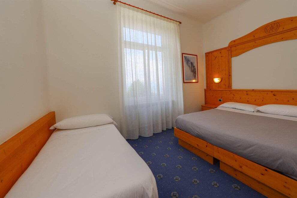 The triple rooms (qty 3) 22 sqm. are ideal for accommodating up to 3 people. Each room is equipped with a double bed and a single bed, as well as a desk, TV, and fridge to meet every need during the stay.