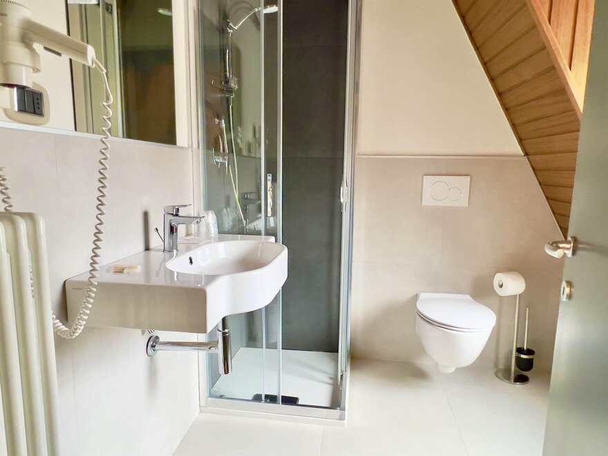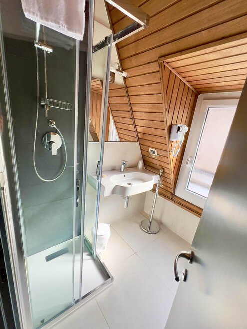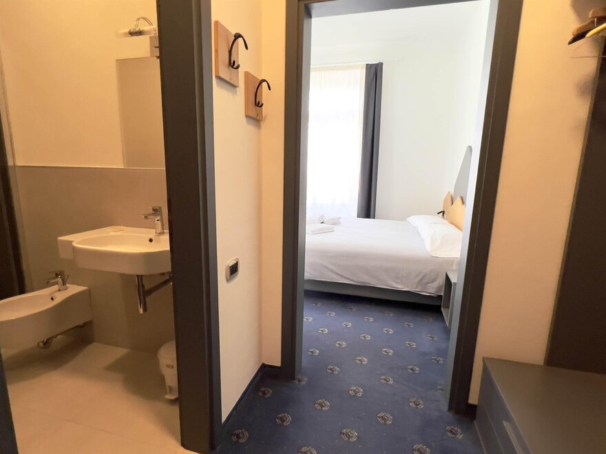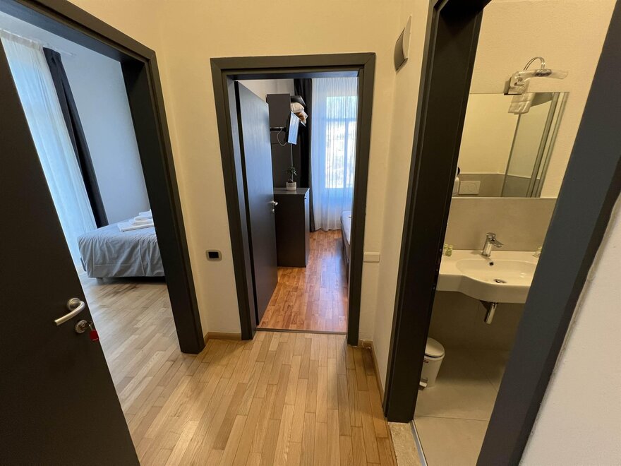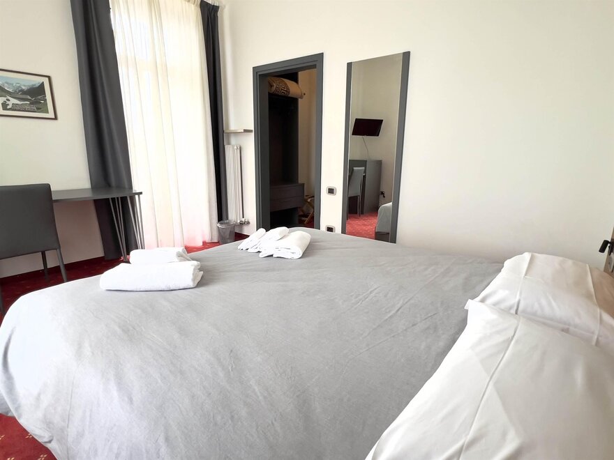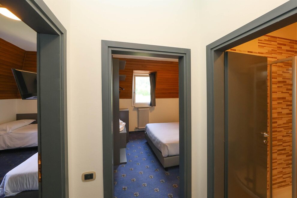 Connecting Superior Room: imagine stepping into the threshold of a truly special connecting room, a refuge where elegance merges with comfort and practicality. This is not just a simple hotel room, but a unique experience, with a touch of originality provided by the exposed ceiling. The room offers ample space to relax and move freely. Natural light floods the spaces through the windows, creating a warm and welcoming atmosphere. But the true highlight is the exposed ceiling, with its imposing beams descending from above, adding a charming architectural element. Modern comforts abound, designed to make your stay as pleasant as possible. The two rooms are connected by a well-equipped shared bathroom, complete with everything you need. This connecting room is perfect for families, groups of friends, or couples who desire space and privacy without sacrificing the convenience of a shared environment.