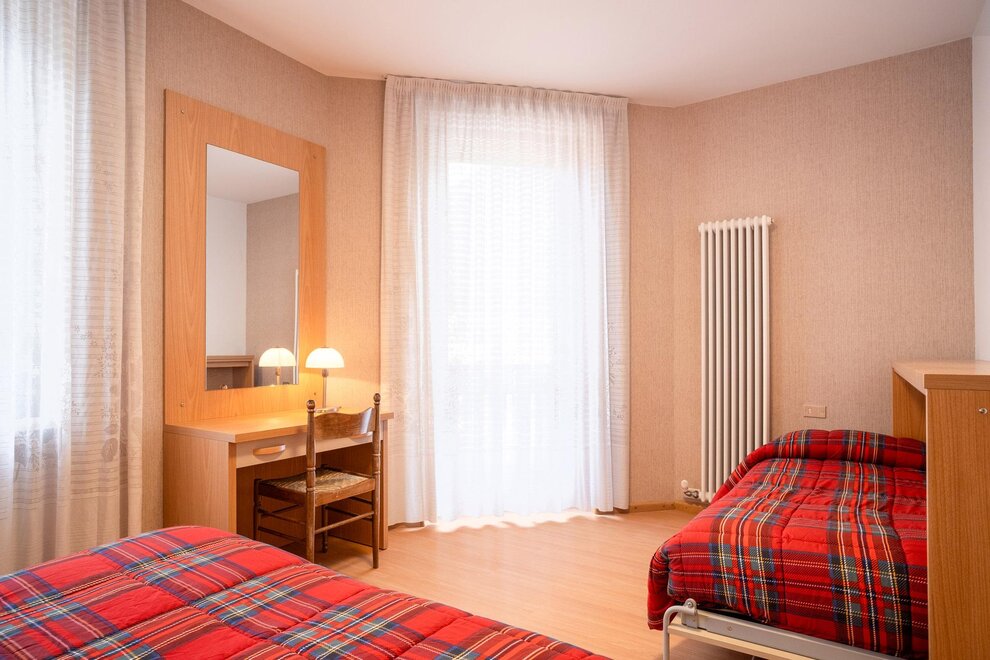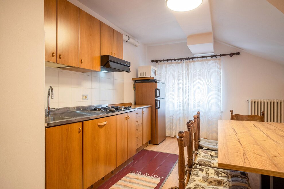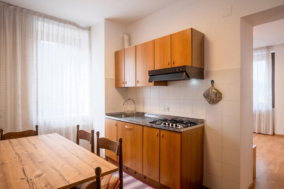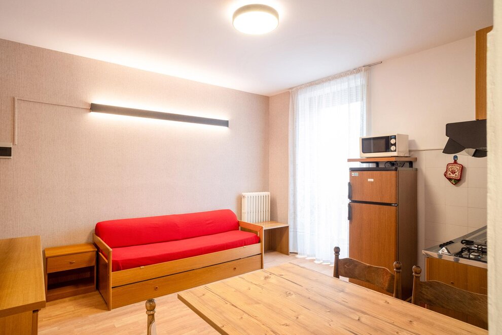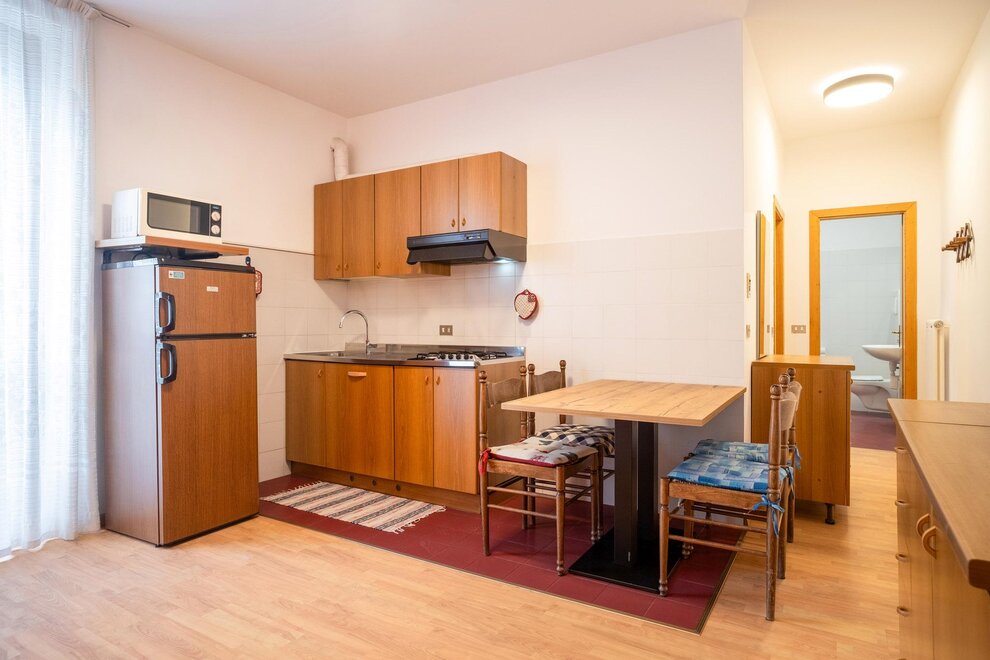 The apartments are cosy and well-furnished: the two-room flat (c. 45 m), for 4/5 people, has a living-room with twin-place divan, a cooking area with four gas-rings and a microwave oven and a bedroom with double bed and third bed.