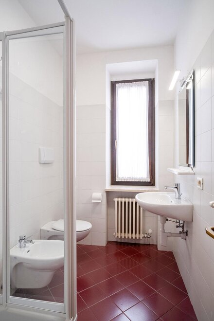 Spacious bathrooms with shower or bath tub. The three-room apartment has an extra bedroom.