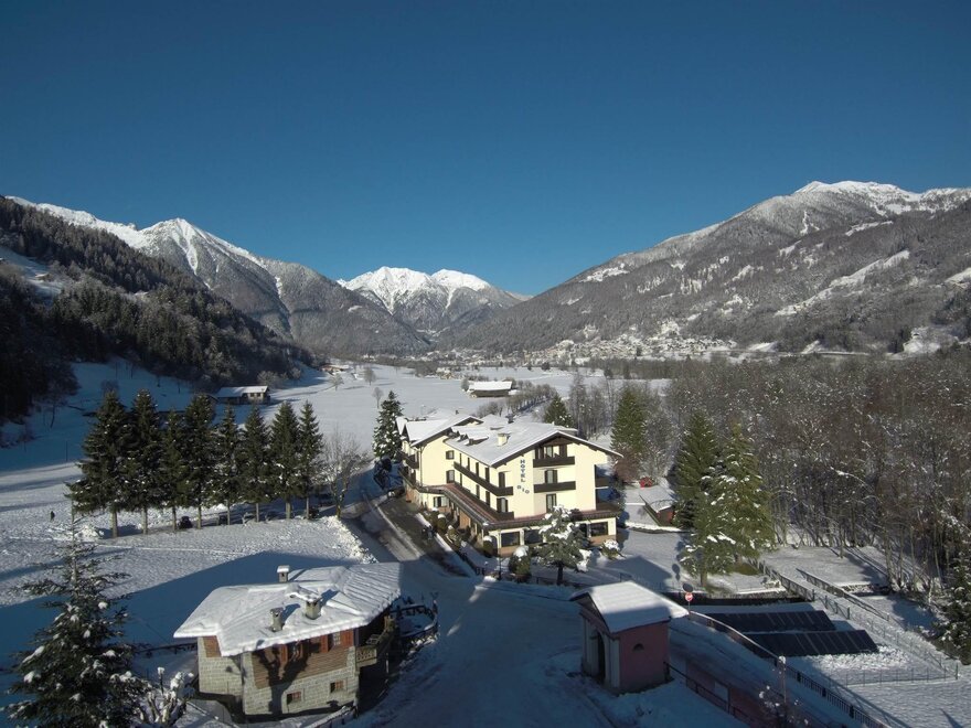 The Junior Suite Presanella is perfect for both discerning individuals seeking a luxurious stay and families in search of comfort. With its warm colors and attention to detail, the room offers a cozy and relaxing atmosphere. Featuring a spacious area of approximately 34 m², a king-size bed, breathtaking panoramic views, free WiFi, two 32" LED TVs, and reserved parking, the suite ensures a unique experience for every guest. Whether you're a couple or a family, the Junior Suite Presanella will meet all your needs.