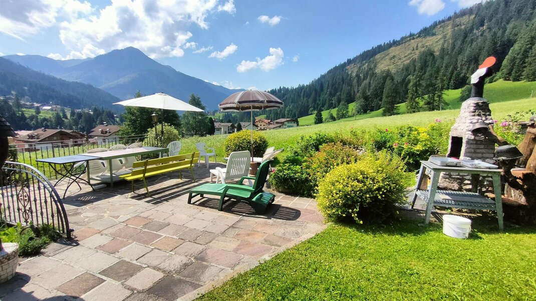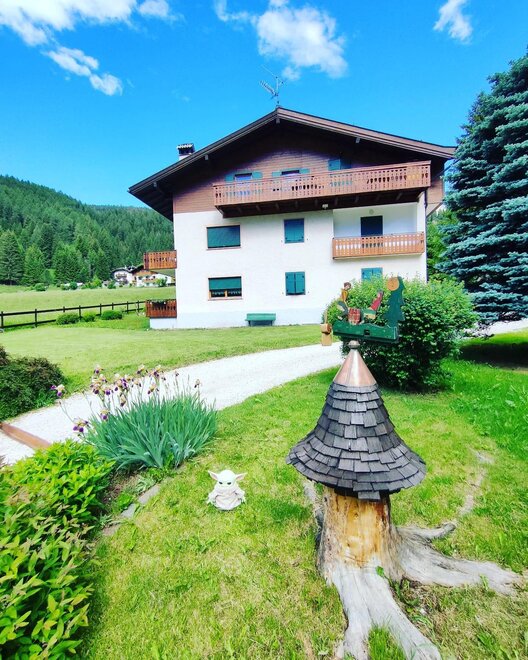 Located in Soraga di Fassa in the heart of the Unesco Dolomites in Val di Fassa, in a sunny and quiet area with large green spaces, away from traffic but a few minutes walk from the center of the village of Soraga and all services: