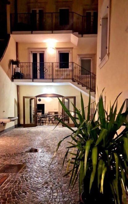 From the Casinò di Arco (Viale Magnolie, 9) head towards Via Garberie, turn right onto Via Garberie after 180 metres, and then slightly left onto Via Santa Caterina. At the roundabout after 1.1 kilometres, take the second exit onto Via Santa Caterina/SS 45 bis. After 450 metres, at the roundabout, take the first exit onto Via Sant'Andrea/SS 45 bis. After 900 metres, at the roundabout, take the second exit onto Via delle Grazie. After 550 metres, turn left onto Via Vittorio Veneto. Travel 300 metres, and at the crossroads, turn left; your destination is 20 metres to the right (wooden door adorned with a wrought iron grille and the initial “R”).