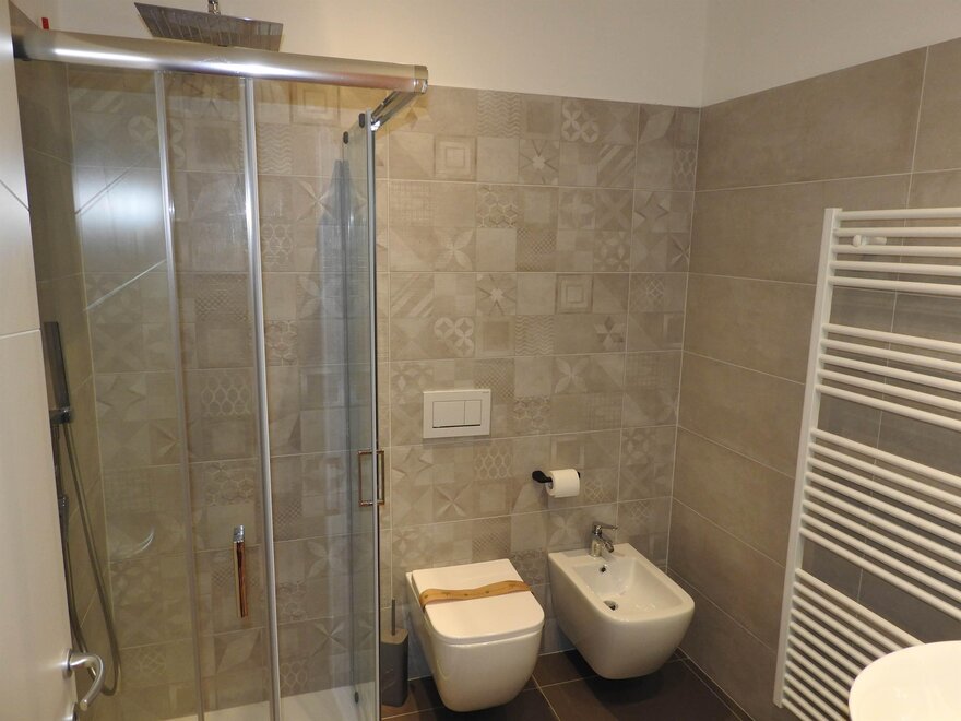 wash stand, bidet, bath, toilet, shower, toilet, shower, toilet, running hot/cold water