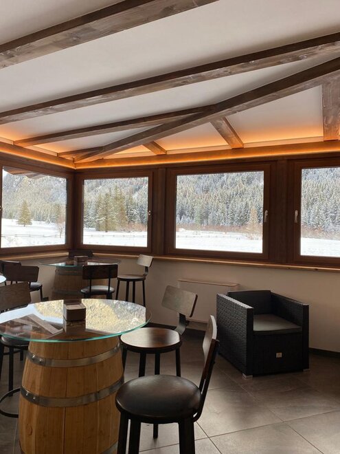 Shortly renewed, Soggiorno Dolomiti, offers his guests an unforgettable holiday in a unique contest and absolute relax. 46 rooms for a total of 120 beds, smart furnished and equipped with the main comforts that allows relax and rest. Every morning 1000 km skislopes wait for you. The ski resorts are easy to reach thanks to an efficient free of charge skibus service. For shopping, tennis, minigolf and other facilities Canazei is really near. The cooking of our chefs suggests local and international dishes with a reach select of typical wines and spumanti. The wide lounge let our guests spend the wonderful evenings with a fireplace and special drinks prepared by our barman. We have also a TV Home Theatre room ski deposit and private car parking.