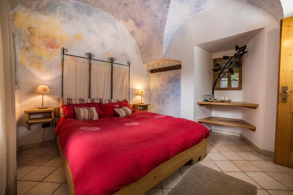 Two floors of our big country house are ready to host your moments of relaxation. On the first floor there are two double rooms with private bathroom and two double rooms with a shared bathroom. All rooms open onto a hallway where you will always find fresh fruit and all the necessary to prepare a good herbal tea (with our herbs). The rooms are furnished with wood and decorated with warm mountain colors and boast a special feature: each room is dedicated to a San Giacomo family. They are included in the price: breakfast, dinner, bed and bath linens, housekeeping, both daily and final. All rooms have private bathroom, color TV, wi-fi some of them with hair dryer and refrigerator. Not Included: drinks and any change of linen midweek. FAMILY SPECIAL.