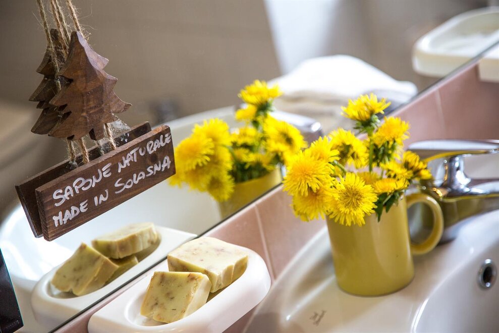 Two floors of our big country house are ready to host your moments of relaxation. On the first floor, the rooms and the second floor instead, Agritur Solasna offers hospitality in two apartments that can accommodate more people are available. These apartments can be rented with use of kitchen or in the offer including breakfast or half board.All rooms open onto a hallway where you will always find fresh fruit and all the necessary to prepare a good herbal tea (with our herbs). The rooms are furnished with wood and decorated with warm mountain colors and boast a special feature: each room is dedicated to a San Giacomo family. They are included in the price breakfast, dinner, bed and bath linens, housekeeping, both daily and final. The apartments have a balcony and are equipped with bathroom, color TV, wi-fi equipped kitchenette and fridge. Ideal for Families.