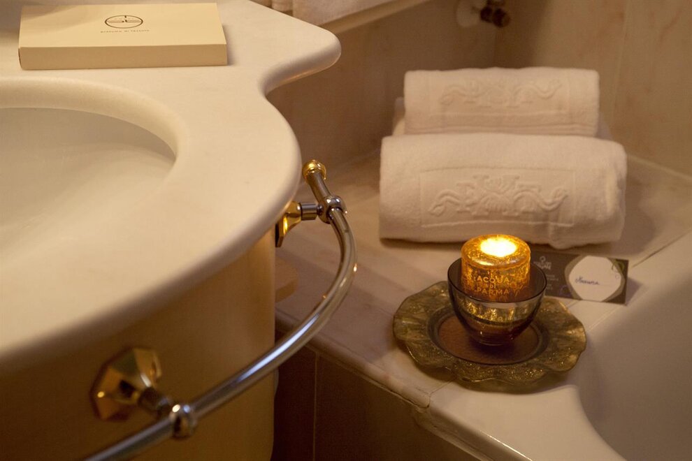 Stylishly furnished Charme Triple Room for 3 people, complete with marble bathroom with shower or bathtub. Every room has a small living area and a balcony with panoramic view overlooking the lake. Facilities: modern decor in soft neutral tones and wood furnishings. Heating, desk, WI-FI, LCD satellite TV, direct dial telephone, minibar, electronic safe, slippers. Bathroom with bathrobes, hair dryer, make-up mirror and complimentary toiletries. Breakfast, Tax and VAT are included.