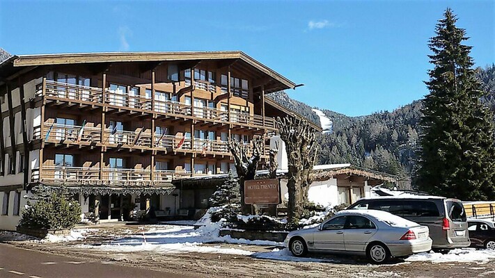 There, where the Fassa Valley opens to a large, green dell, surrounded with the Catinaccio, Sella, Sassolungo, Marmolada, Monzoni and Latemar mountain groups of the Dolomites, lies Hotel Trento that in the spirit of the traditional hospitality of the Fassa people offers a comfortable ambience able to satisfy even the wants of the most exacting customers. Large terraces for sunbathing, garage and private car park.