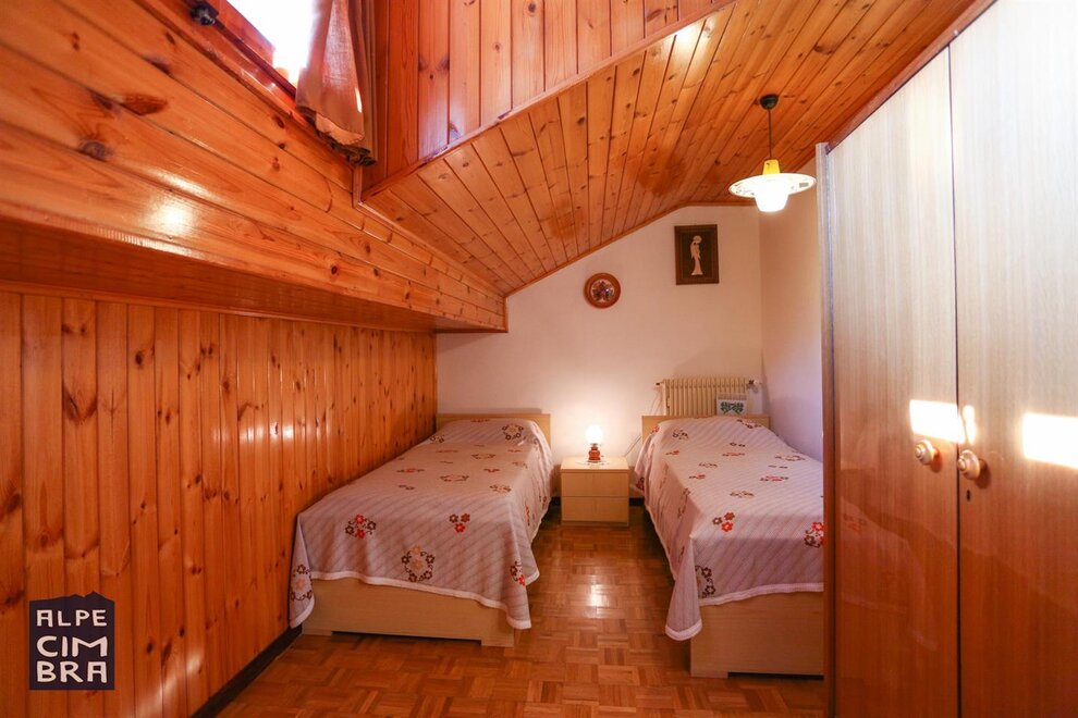 Attic apartment on the 3rd floor in Folgaria, a stone's throw from the center. Kitchen with oven, hob and fridge, two bedrooms, one double and one twin. Bathroom with Velux light, shower and washing machine. Terrace available at the entrance of the house. Parking space and ski and bicycle storage
