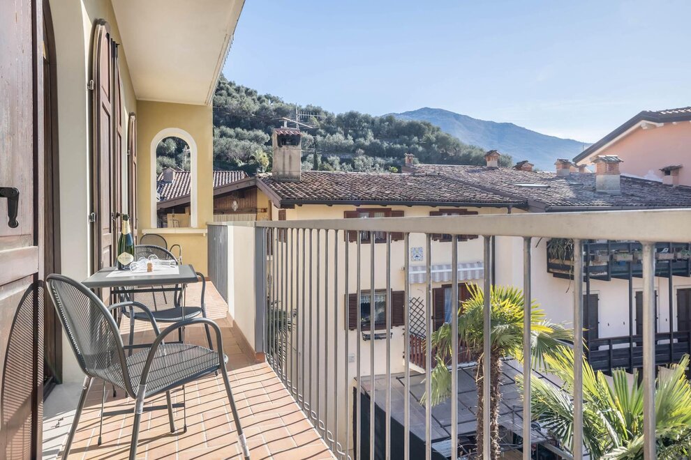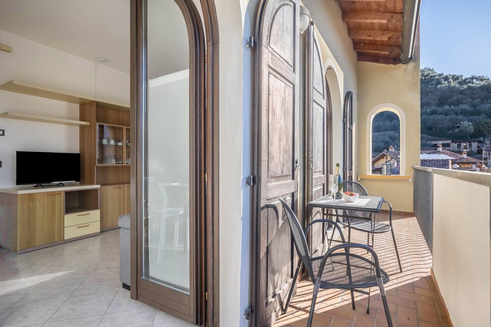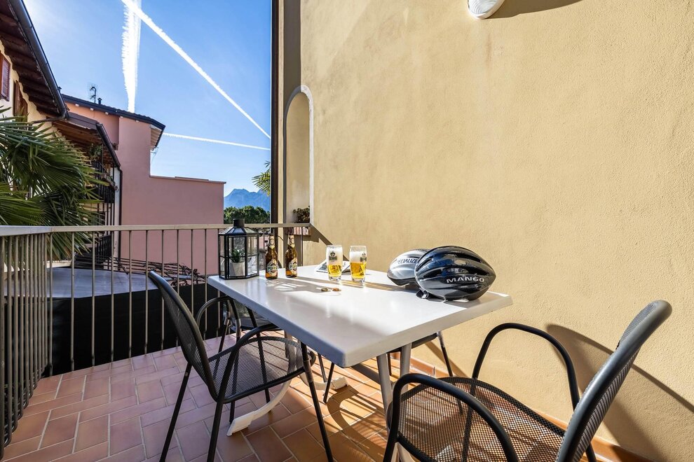 This apartment has a balcony with chairs and a small table where you can relax and enjoy the beautiful panorama of Arco and the surrounding area