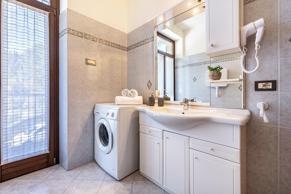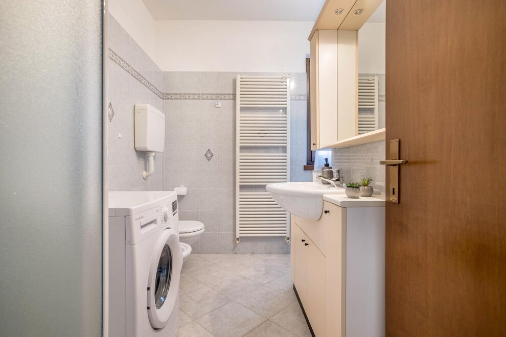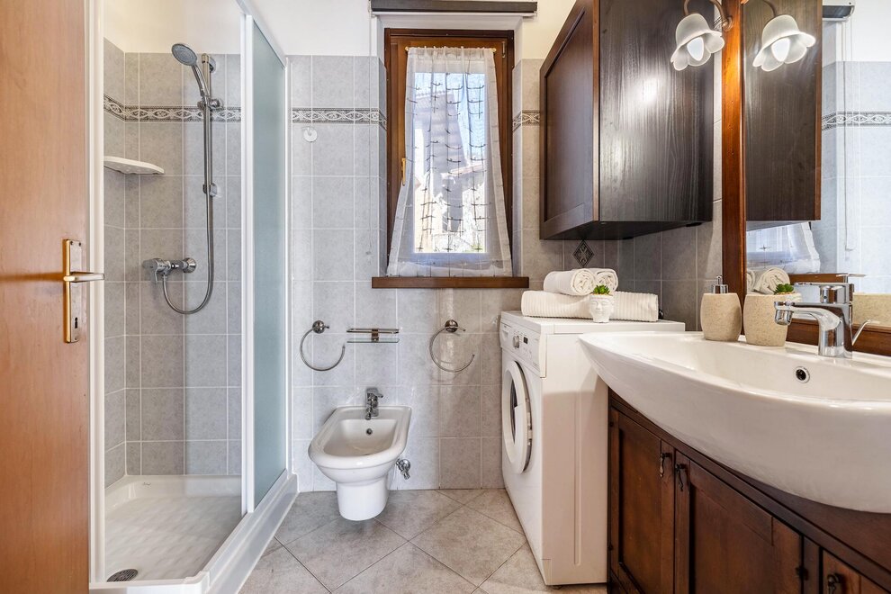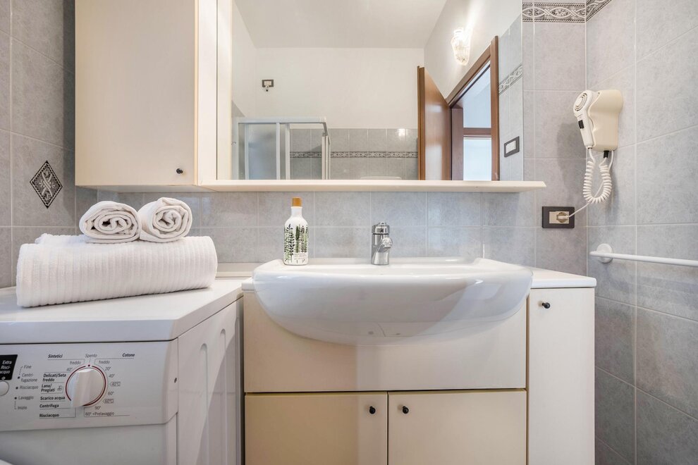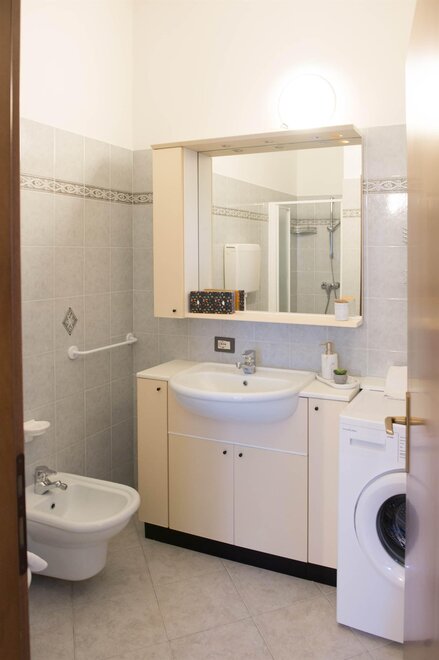 It is an extremely bright, spacious and well furnished apartment, it has two bedrooms, one with a double bed and one with two single beds for a total of 4 guests, a large kitchen with a dining table, a large living room, a sofa and satellite TV, windowed bathroom with shower, toilet, bidet and washing machine.
