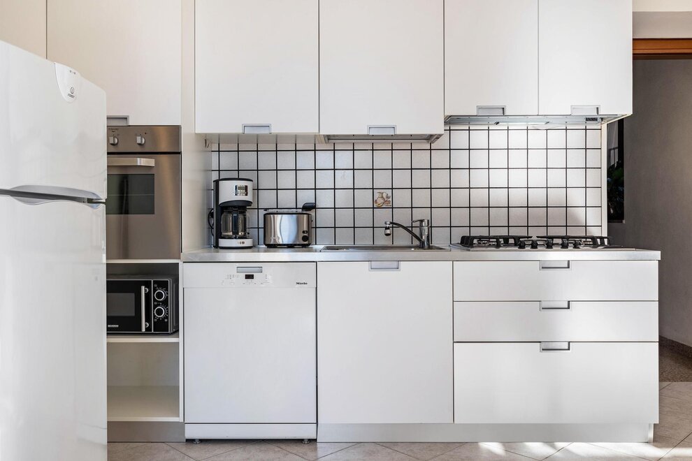 The kitchen is equipped with all the necessary dishes, fridge, dishwasher, microwave oven, toaster and kettle.