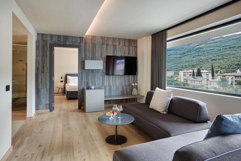 Tranquil east-facing junior suite with view of the garden and Mount Brione. Enjoy the quietness from the balcony...