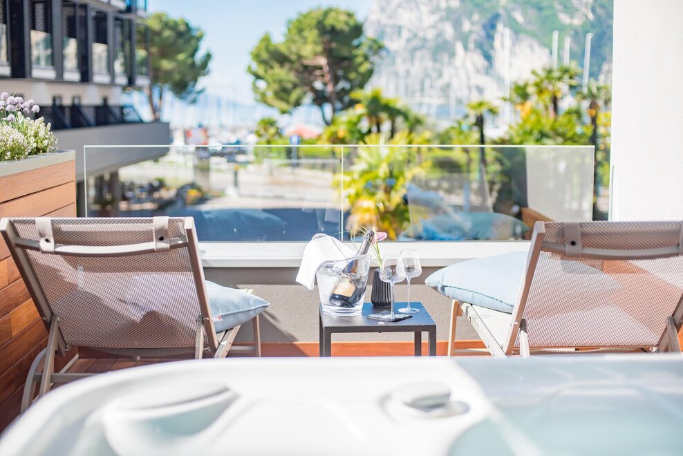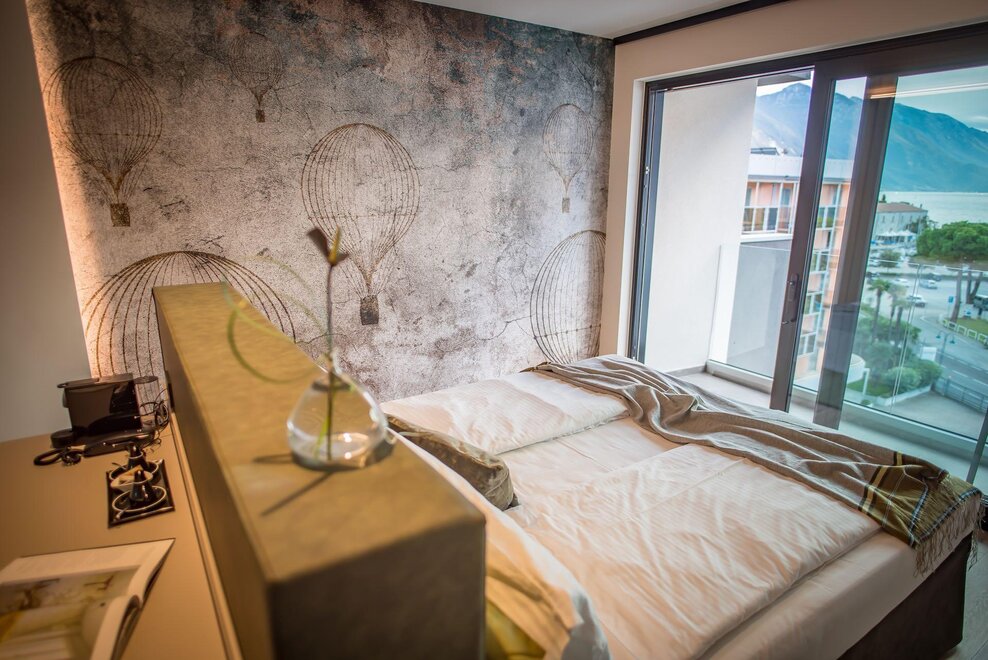 A prestigious Sky Suite located on the fifth floor with a 30 sqm private wood upper-terrace, outdoor hot-tub and 360° view… lake, mountains, city centre … Doesn’t that sound lovely?Highlight: