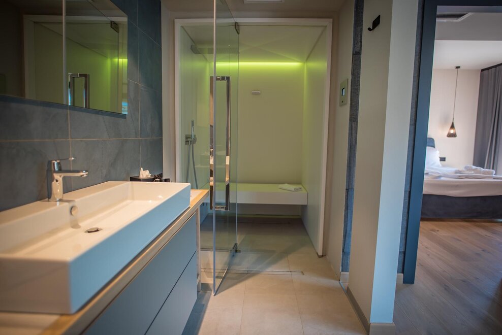 Restore yourself in the intimate infrared sauna and take a dip in the outdoor hot tub, while enjoying the lovely green and blue view. Located on the first floor, Lilli's special terrace is designed for your well-being.Highlights: