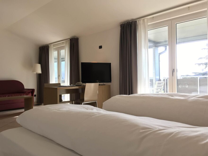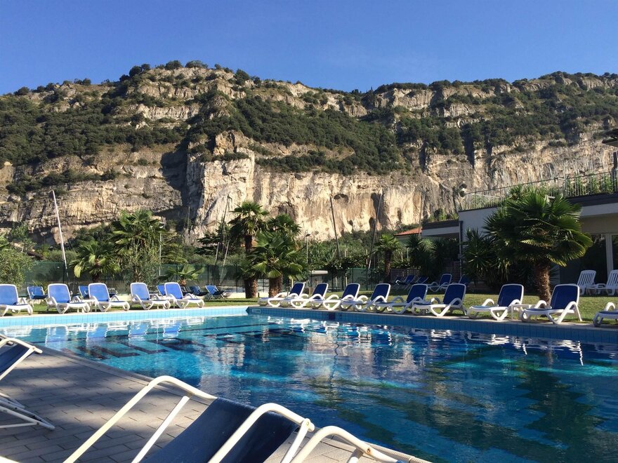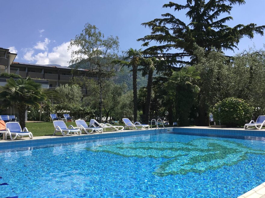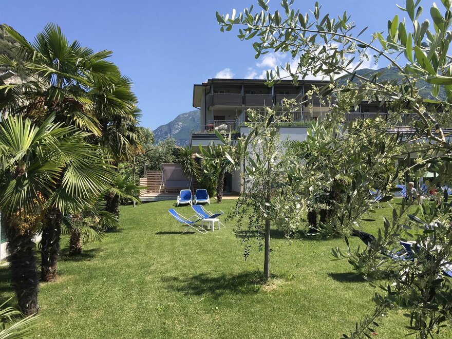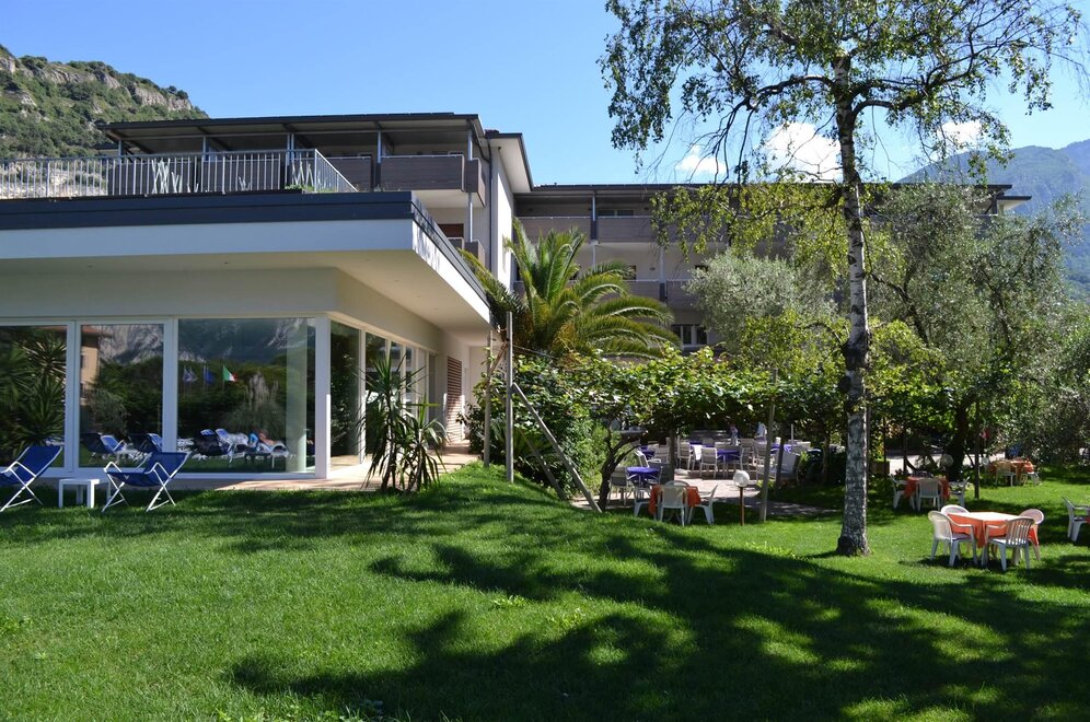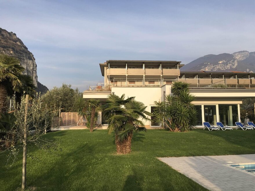 Our Hotel is comfortable and family run. It is situated in the North of Lake Garda not far from the Dolomite. It is only 200 m. far from the beach where there are the surf school and the sail center. Modern and comfortable rooms. We take the greatest care of the breakfast buffet, which is very rich. For lunch we offer a snack service in garden, "A la carte" for dinner we have 4-course menu. Around the hotel there is a wide garden with a pool and many different kinds of trees and coloured flowers. Large parking area for cars and motorcycles. Lockable bike room with video surveillance. Service area for bike, with tools provided. Charming indoor pool with Jacuzzi. Wellness and fitness center. Wi-fi free. City bikes available. Air conditioned. Our Hotel is the right Hotel for a holiday with family and for sport's lovers.