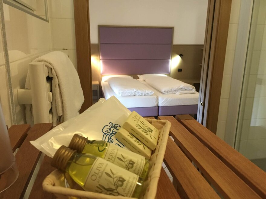 Cozy and modernly furnished Junior Suites - facing south - room size approximately 27/34 sqm - living area with sofa - with balcony in loggia - air conditioning - telephone, 20'' satellite TV with teletext - internet connection - digital safe - bathroom size approximately 5/6 sqm - shower cabin and hairdryer
