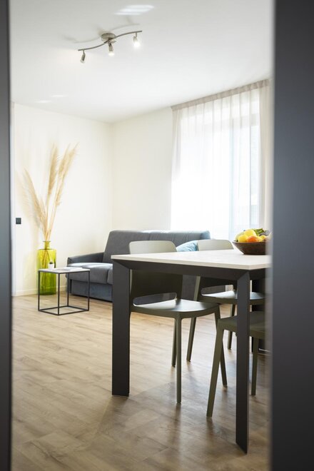 If you desire the comfort of an apartment but do not want to give up the convenience of a hotel, you can also purchase hotel services in the apartment, which include breakfast, half board, or full board.