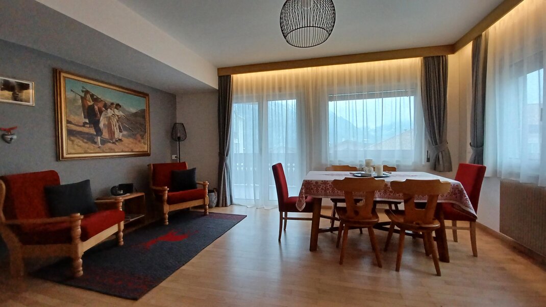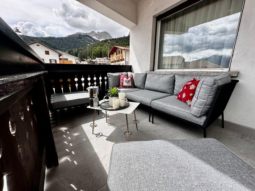 Ciasa De Marugiana is a bright, spacious, newly renovated apartment located in the centre of Vigo di Fassa with an impressive mountain panorama in the heart of the Rosengarten ski and hiking area. It is adjacent to many services and restarurants. The supermarket, bakery, cafe, ski school, area bus stop and even the cable car are all within a two minute walk.