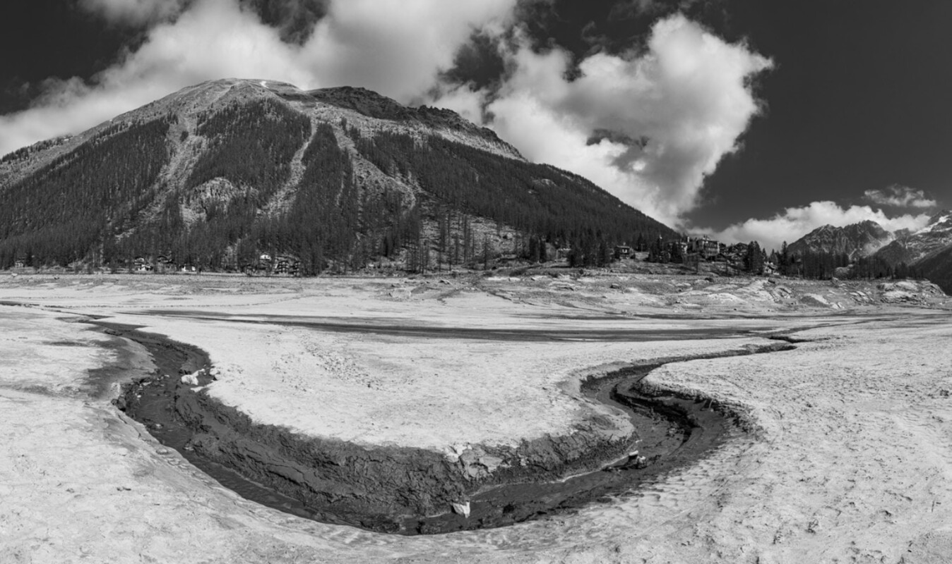 Data confirms that 2022 was the hottest year in Italy since 1800. Covering the entire country from North to South, scouring glacier, river and lake areas, Stefano Torrione analyses landscapes where the “wounds” inflicted by the drought have been most evident. The result is huge photos that in the austere language of black and white, highlight the effects on the country of global warming and address the issue of “tormented beauty”.