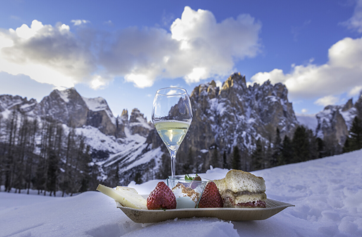 Take Trentino mountain cheeses, pair them to Trentodoc mountain bubbles, Trentino wines or the distinctive local artisan beer and add Trentino apples. Add snow, ski slopes, candid atmosphere of the mountains and, above all, the magic scenery of the Dolomites, on occasions even with the Dolomiti Ski Jazz Notes. Result? Fun and delicious aperitifs that make tickle your taste buds and are trendy indeed ... in a word, HAPPYCHEESE!
