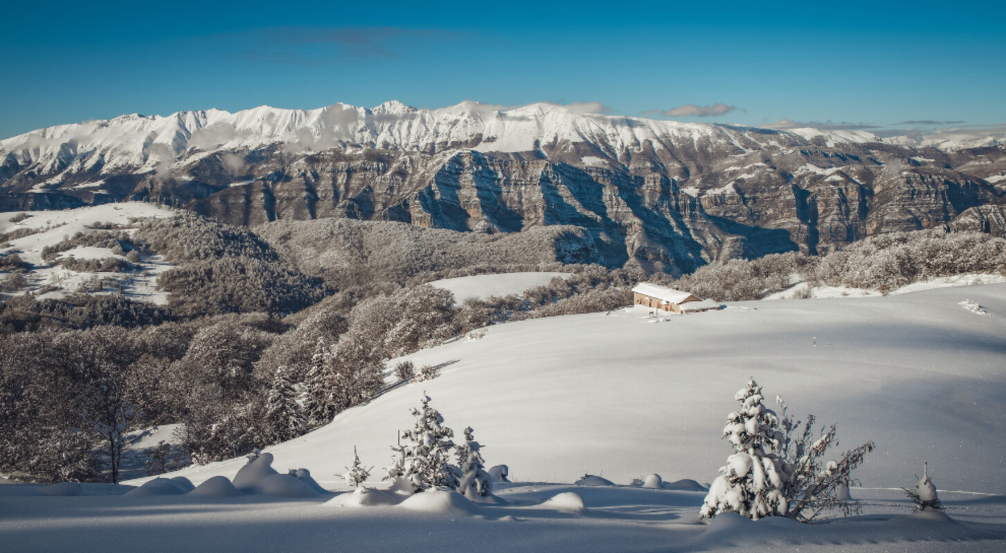 Monte Baldo Aviense as you’ve never seen it before: frozen waterfalls, snowy meadows emerging from thick beech and conifer woods, discovering Pian della Cenere and its bivouacs, the small church of Madonna della Neve and its history, and the unparalleled flavours of the traditional cuisine at Rifugio Monte Baldo — a true culinary institution in the area.
