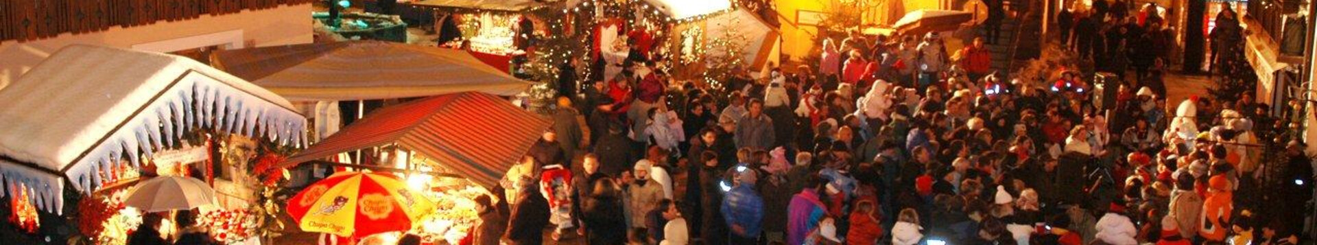 Today, the Christmas Market has about forty exhibitors who offer their products in characteristic wooden huts or typical vaults, barns and stables along the streets of the town: an attractive spectacular setting for the Christmas Market, which is made even more special with colour effects created by lights, decorations and scenes in the town.