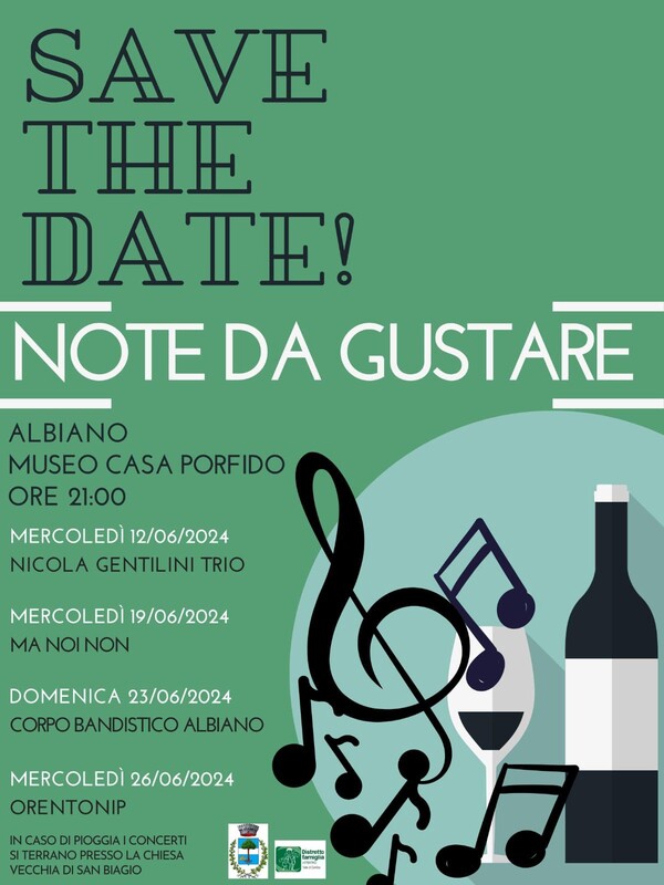 N.B. In caso di pioggia i concerti si terranno presso la chiesa vecchia di S. Biagio di Albiano.