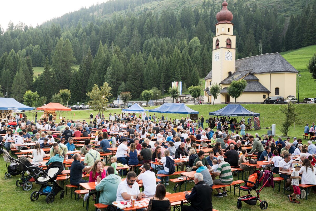 Get ready for an unforgettable culinary experience that celebrates the conviviality and traditions of Val di Fassa at one of the most eagerly awaited and loved summer events: Soraga's "Golosando" festival! In the meadow below the church, from 6.30 p.m. onwards, the air will be filled with irresistible aromas and contagious laughter as you savour the tastiest dishes of Ladin tradition, cooked with passion by volunteer associations and chefs from the village hotels. The menu is a journey through Ladin flavours: start with classic dumplings and continue with a rich barley soup. Don't miss the polenta, cooked in the copper pot and served with succulent sausage, tender knuckle and intensely flavoured local cheeses. And finally, let yourself be tempted by the typical desserts that are sure to win your palate over. But it is not just the food that makes this evening magical. The atmosphere is made even more special by the live music of "Spritz Band", which will have you dancing and singing under the stars, with songs ranging from the rousing Tyrolean music typical of Oktoberfest to Romagna ballroom dancing, from the legendary 1960s to Italian and international singer-songwriters.