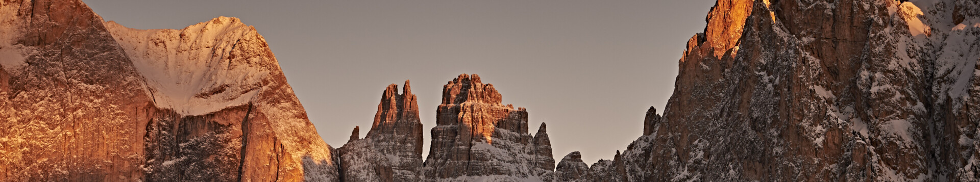 Then it will be time for the show. As the sun slowly sets, closely watch the rocks of the Rosengarten (Catinaccio) group as they become swathed in a bright red hue as if they were covered with vast fields of roses. This phenomenon is known as alpenglow, locally called enrosadira. Legend has it that Laurin (Laurino), king of the dwarves, scattered roses all over the mountains and then spitefully cursed them by saying that “neither by day nor by night would any human eye ever see the roses”. Consequently, they can only be spotted at sunrise and sunset.