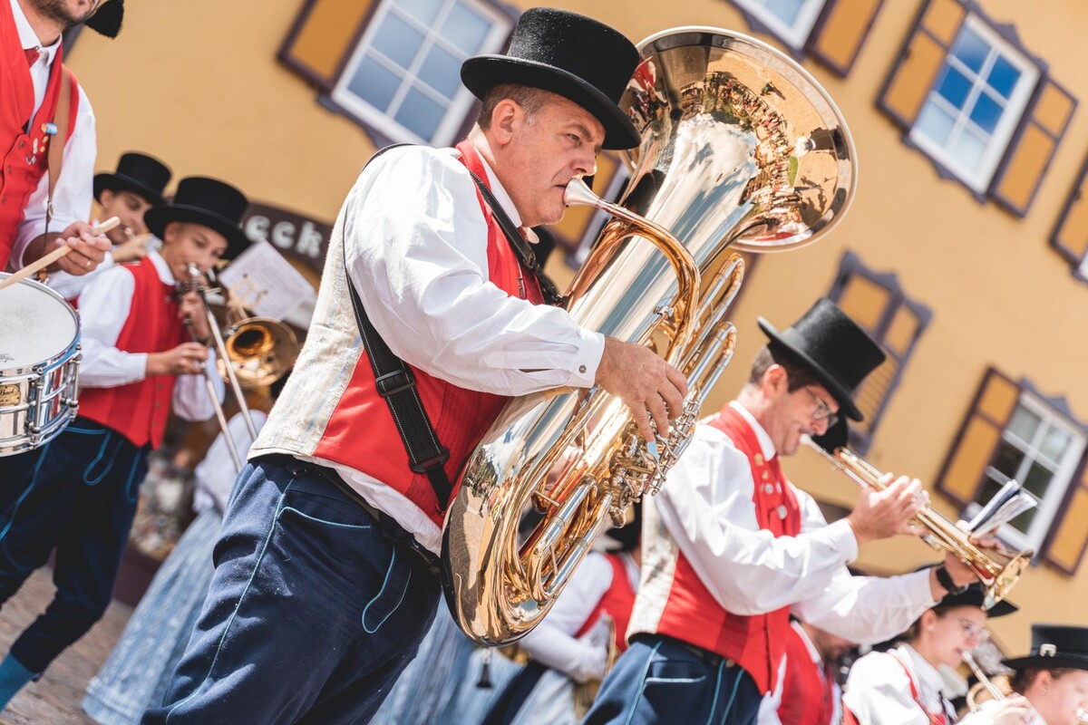 The municipal band of Moena has been part of village life since the mid-19th century, becoming an essential part of every festival, religious celebration and civil holiday. A symbolic moment in its history dates back to 1858, when it was asked to perform officially during the visit of Archduke Charles Louis of Austria to Cavalese. It was then that the idea of performing in uniform was born, inaugurating a visual identity - red, white and blue - that still distinguishes it today. After the inevitable interruptions during the First and Second World Wars, the band returned to playing with renewed enthusiasm, thanks in part to the guidance of Maestro Luigi Canori, a well-known composer from Moena. He composed "Forti e baldi", the piece that opens the summer concerts with its proud and rousing spirit.