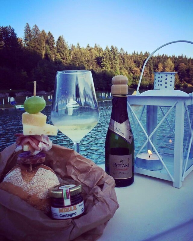 Back the food and wine walk of Lake Lavarone. At sunset, the lake lights up with lights, stars, music ...