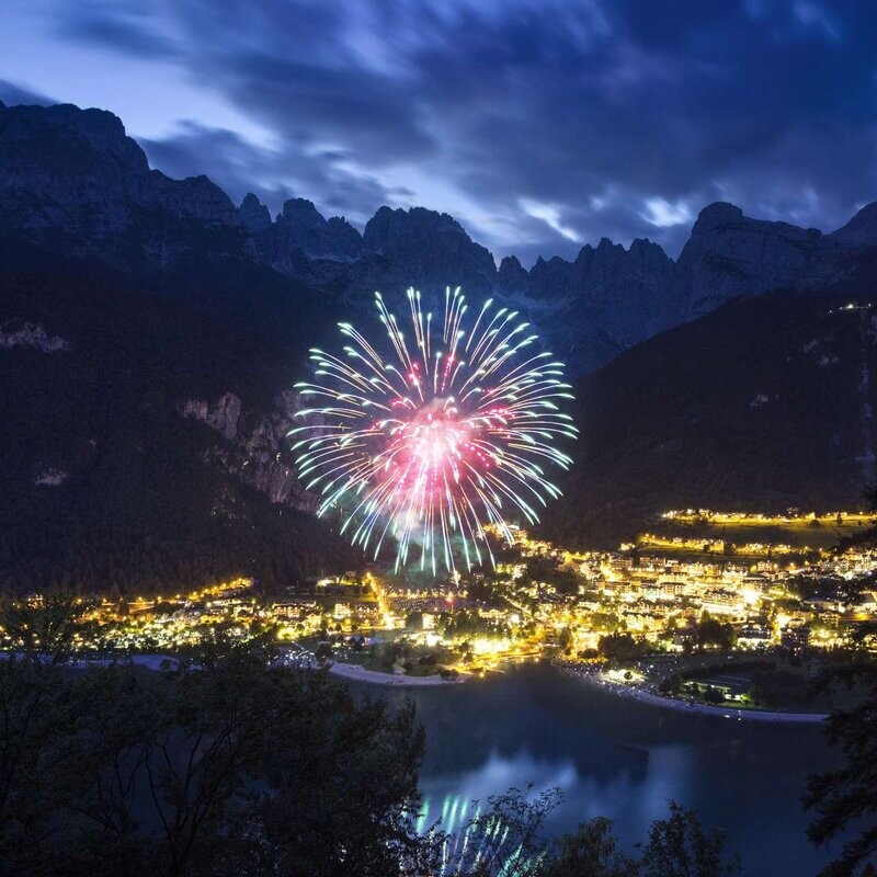 On 15 August, we look forward to seeing you at the traditional fireworks display on the shores of Lake Molveno.The display is scheduled to start at approximately 9:30 p.m.