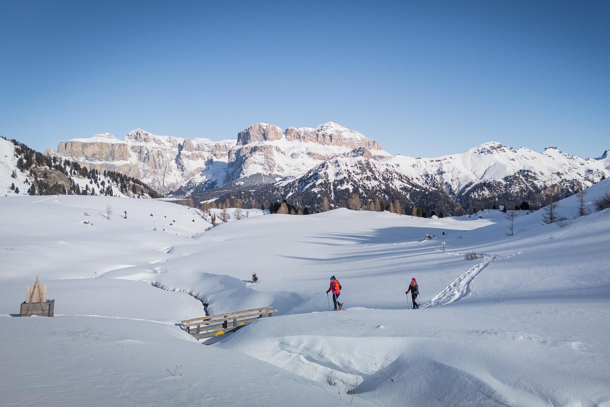 A snowshoe walk in the Ciampac basin to immerse yourself in the intimate essence of the Dolomites in winter