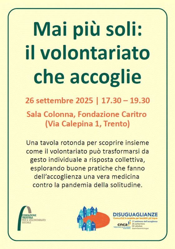 Never alone again: welcoming volunteer work - Trentino Foundation for Social Volunteering