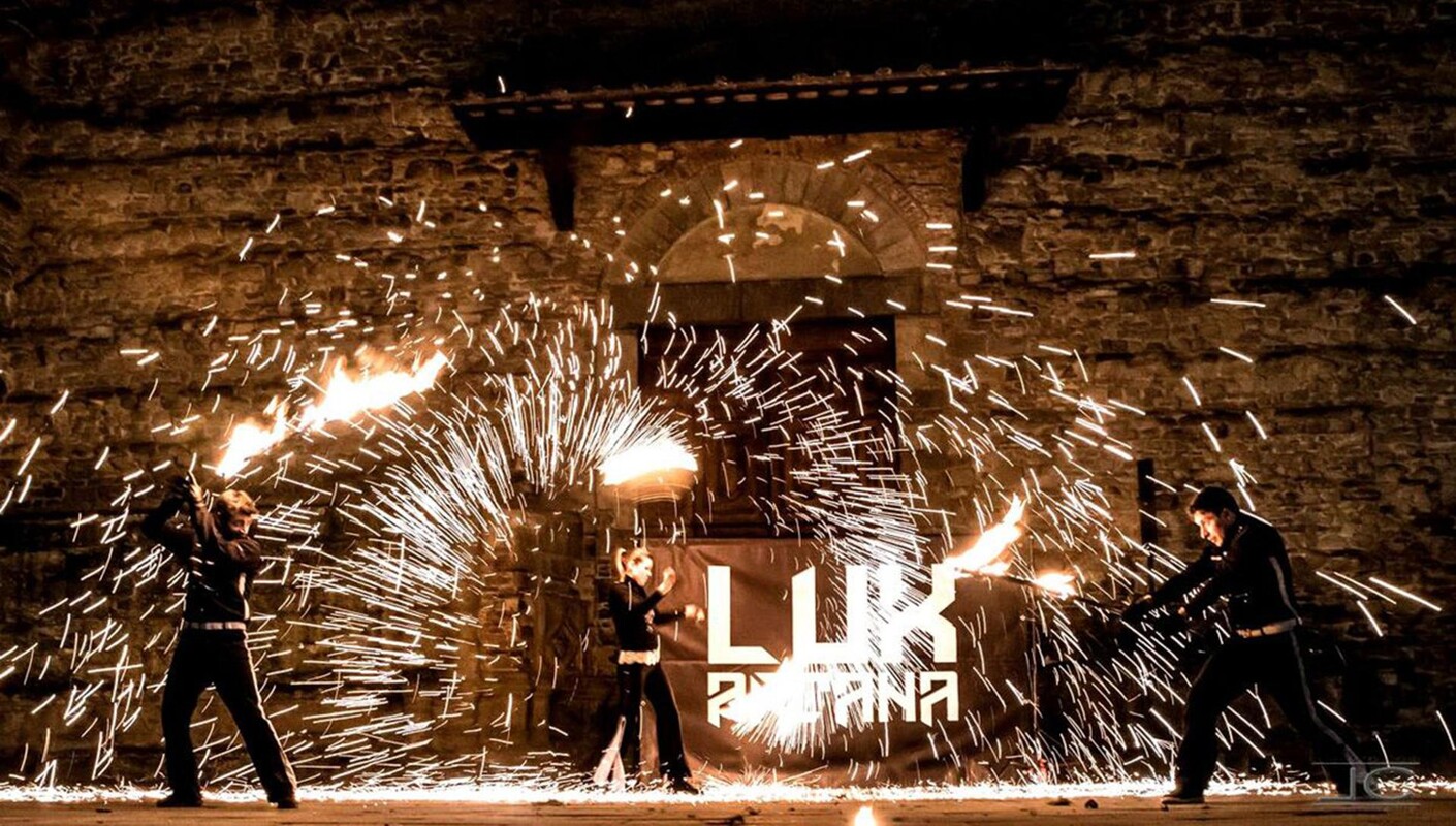 It will be a literally sparkling show by the Tuscan artistic company Lux Arcana, famous for its extraordinary acrobatic performances involving live fire and LED light effects. On stage, a company of performers compete in a no-holds-barred contest, where each artist puts their talent, daring and vision on the line to conquer the most indomitable element: fire. Amidst showers of sparks, hypnotic dances and precision choreography, the space is lit up with a primordial energy that captivates and mesmerises. Every performance is a challenge, every act a test to be overcome. The artists combine martial arts, advanced juggling and ritual dance, creating ever new, powerful and surprising combinations. Underpinning the entire stage set is an epic soundtrack, designed to build tension and guide the audience through a real emotional crescendo. And when the flames rise, the breathing slows, the air fills with heat... The wonder is there, etched in the eyes and skin.