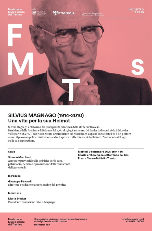 Martedì 9 settembre alle 17.30 presso lo Spazio archeolgico sotterraneo del Sas a Trento.Silvius Magnago ...
