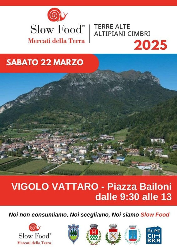 Producers who adhere to the Slow Food Community for the agro-cultural development of the Cimbri Highlands meet with the Slow Food Earth Market. Hours: from 09:30 to 13:00 Location: Vigolo Vattaro