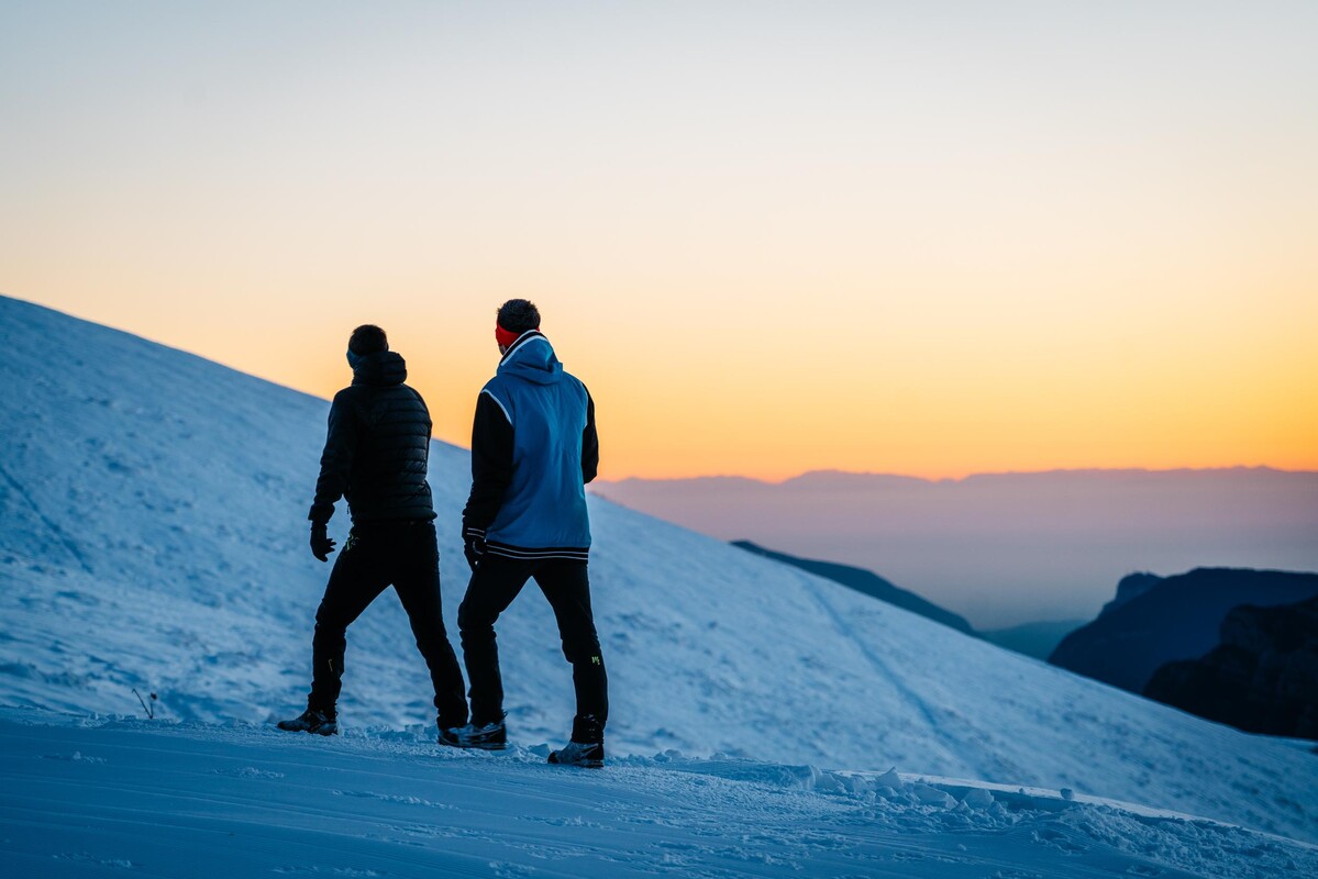 Put on your snowshoes and walk across snow painted by the red of sunset and the white glow of the full moon, accompanied by an experienced Alpine Guide, with an à-la-carte traditional mountain dinner.