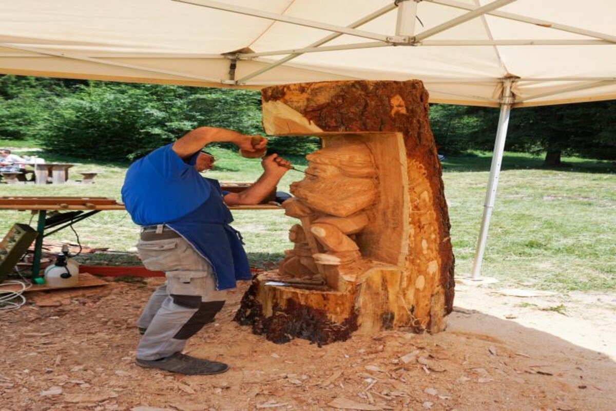 Artists and wood sculptors try their hand at creating wooden sculptures.