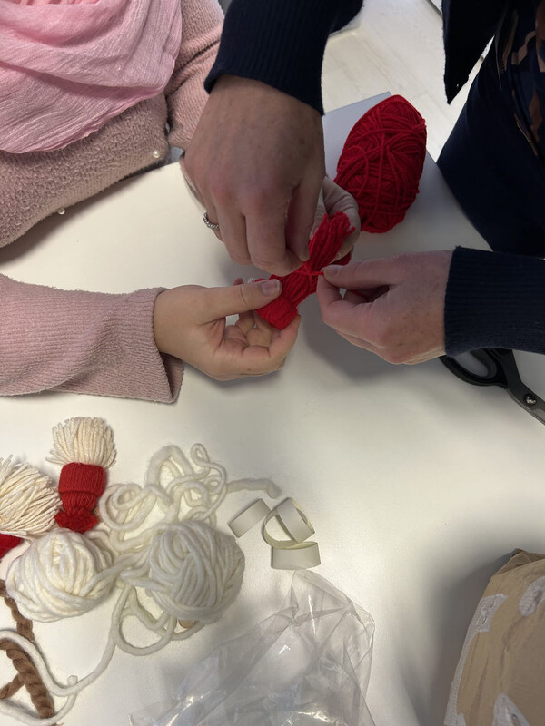 Creation of small Christmas gnomes, a Christmas decoration that will then be used to decorate a garland.