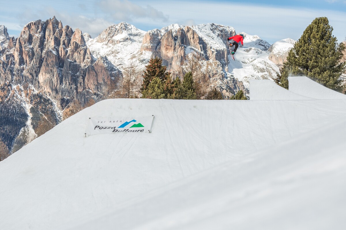 The Snowpark Buffaure, located right in the heart of the ski area Buffaure