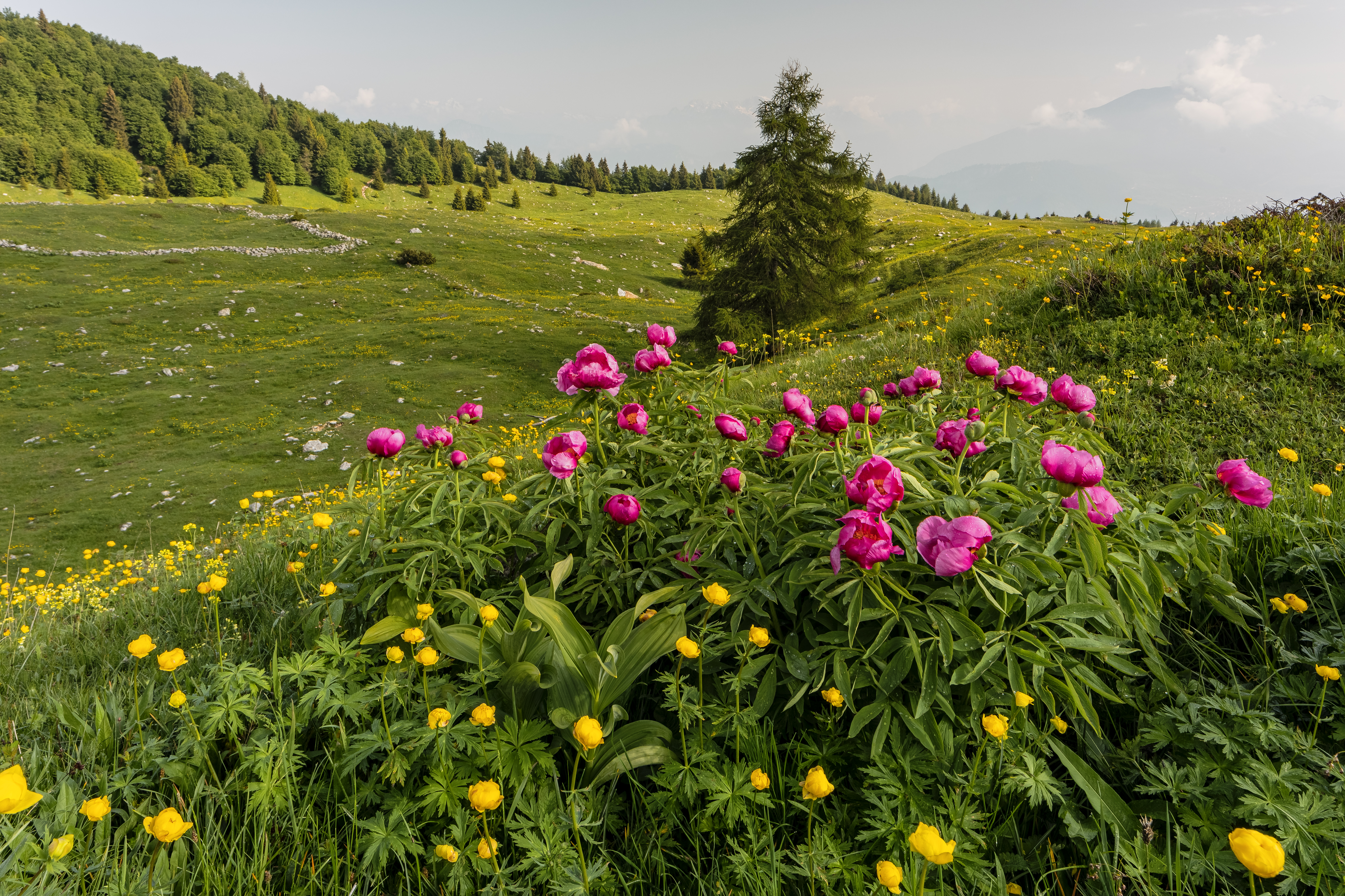 Particularly easy to reach are the Dromaè alpine pastures above the village of Mezzolago, which become a unique white and fuchsia display from May to June, thanks to daffodils and wild peonies offering an exciting play of colours. However, by looking closer, one can also discover wild orchids, anemones and lilies. Wildflowers, traces of history, and a spectacular view of Lake Ledro make the path to Dromaè truly spectacular. Peonies grow along the trail, while narcissuses are concentrated in the meadows above the 'casinei', the huts used by the inhabitants of Mezzolago during the summer. The Dromaè belvedere is an exceptional vantage point over the valley, and you can visit trenches and walkways dating back to the First World War.