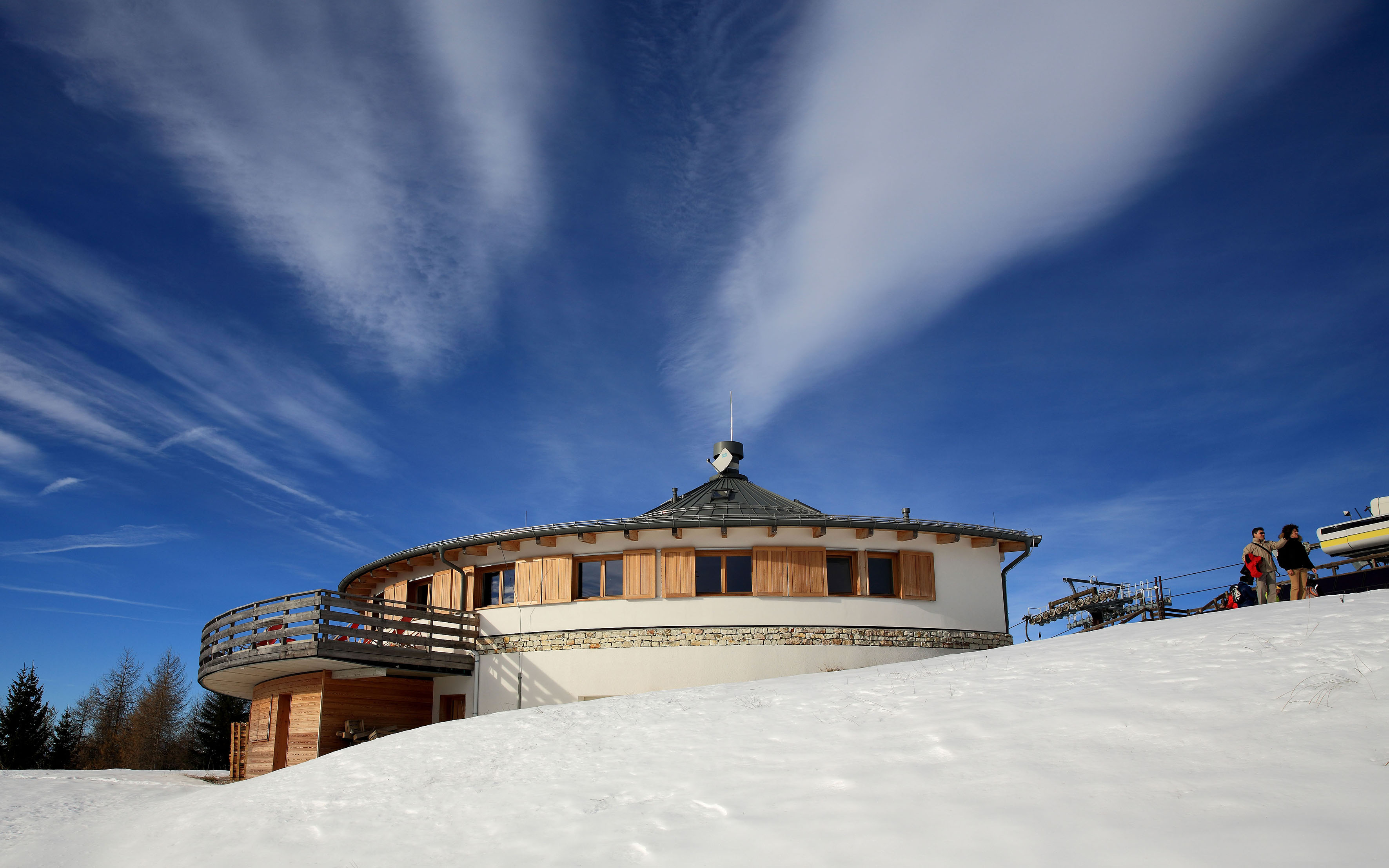 On the Alpe Cimbra, on the border with Veneto, travel along the ‘Skitour dei Forti’, passing by the most visible memories of the Great War and stopping between descents in the numerous high-altitude huts: the Stella d 'Italia huts above Fondo Grande and Baita Tonda above Serrada, for example. While a few kilometres from Luserna, in the heart of the Cimbra forest, there is Baita Neff built from solid wood trunks on the slopes between the Lavarone ski resort and the Alpe di Vezzena.