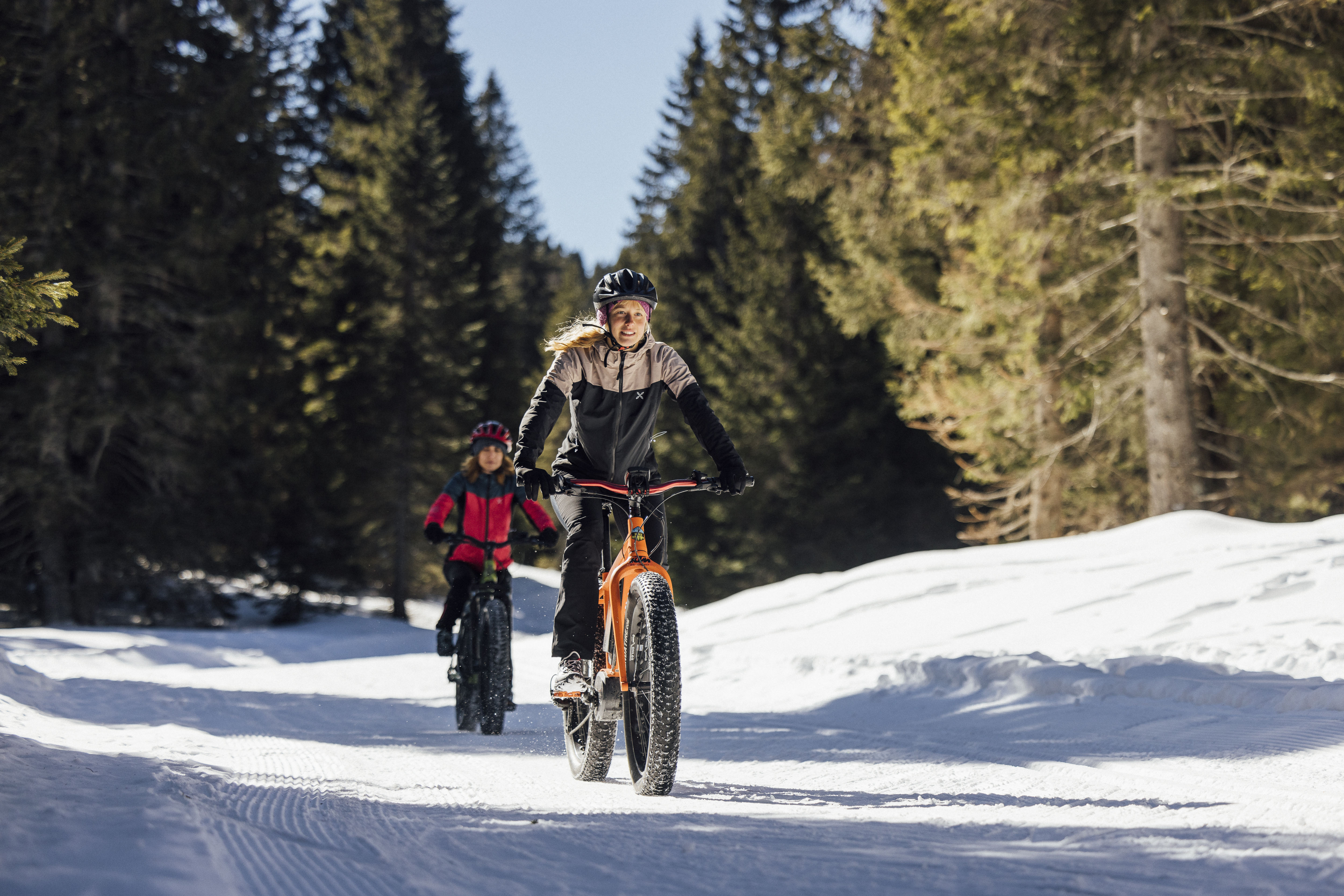 Fat Bikes are mountain bikes with very wide tyres (hence the name ‘fat’), designed to tackle snowy trails alongside forest roads. In addition to the traditional models, pedal-assisted models (E-Fat) are also available. The Dolomiti Paganella Bike Academy offers a dedicated Fat Bike rental service as well as dedicated routes. Daily excursions with DPB Academy guides are offered from Monday to Friday.